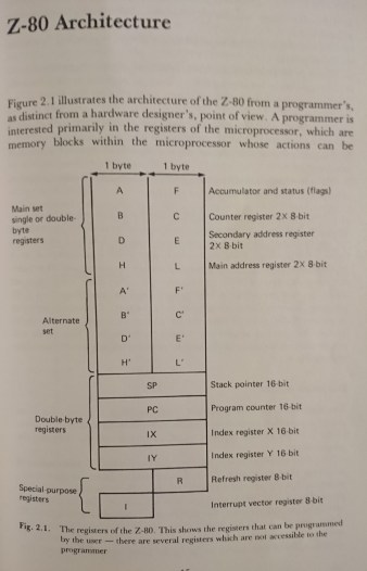 Interesting. For those who have been following along with my assembly adventures, this should be quick to explain – the Z80 has a bunch (actual terminology) of 8-bit registers used for arithmetic and counters, and a handful of 16-bit registers used for addresses. The 16-bit registers have pairs of 8-bit counterparts allowing access to the upper or lower byte. For example, IY is a 16-bit register, IYH allows access to the top byte (IY High), IYL allows access to the bottom byte (IY Low).