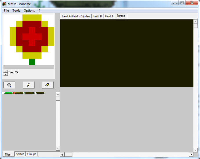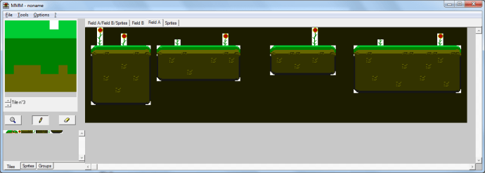 The VDP’s plane A and B memory space can fit in more tile descriptors than there are cells – the surplus is hidden offscreen ready for scrolling. Typically, the data describing the entire scrolling field would come from a map of sorts, which would contain the tile IDs, palette IDs and flipping info for every cell in the entire level. This data would usually be generated from some map designing program to make it easier. I found several tools to do the job, alas they were very much DOS based and I had difficulties getting them to run under Windows 7, even using DOSbox. I settled on MMM, a very basic (but good enough for my needs) Genesis map editor which is able to import tilesets from BMP2Tile, my tool of choice for converting BMP images, which is perfect.